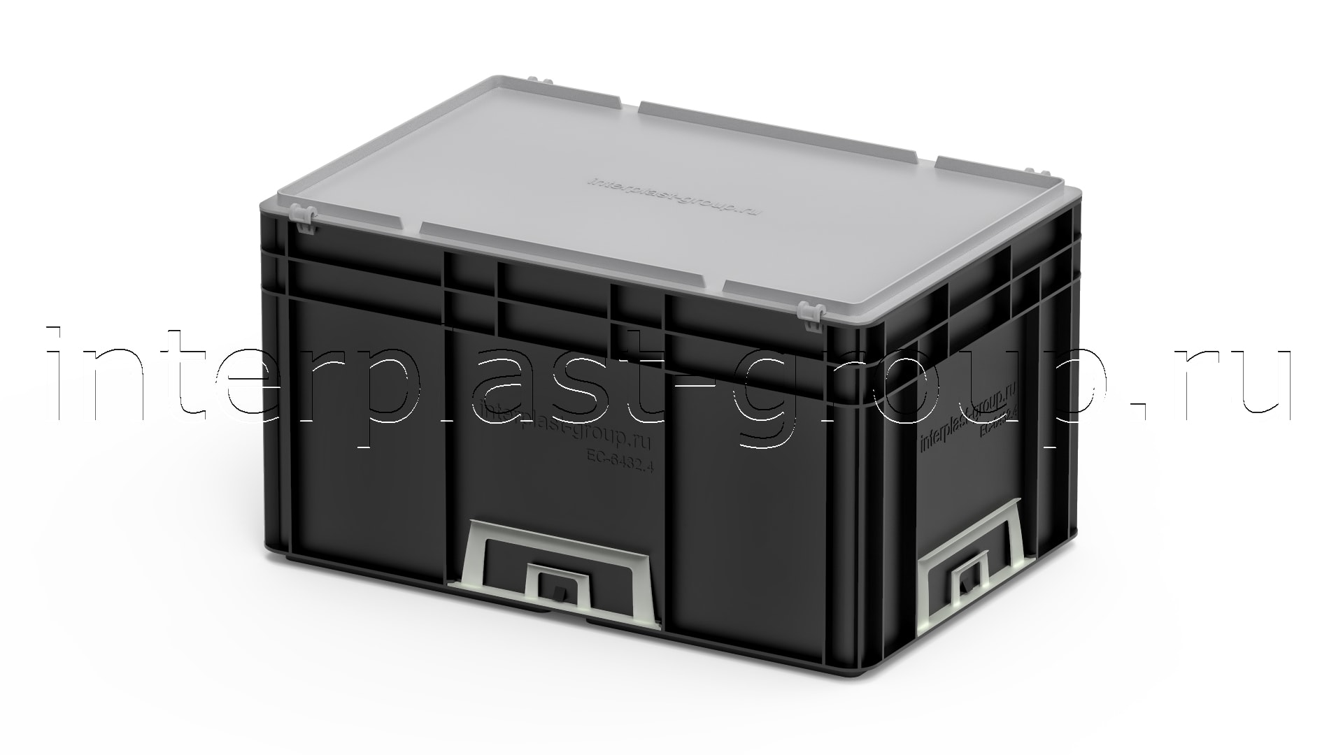 Евроконтейнер закрытые ручки/усиленное дно (черный), 600x400x320 мм