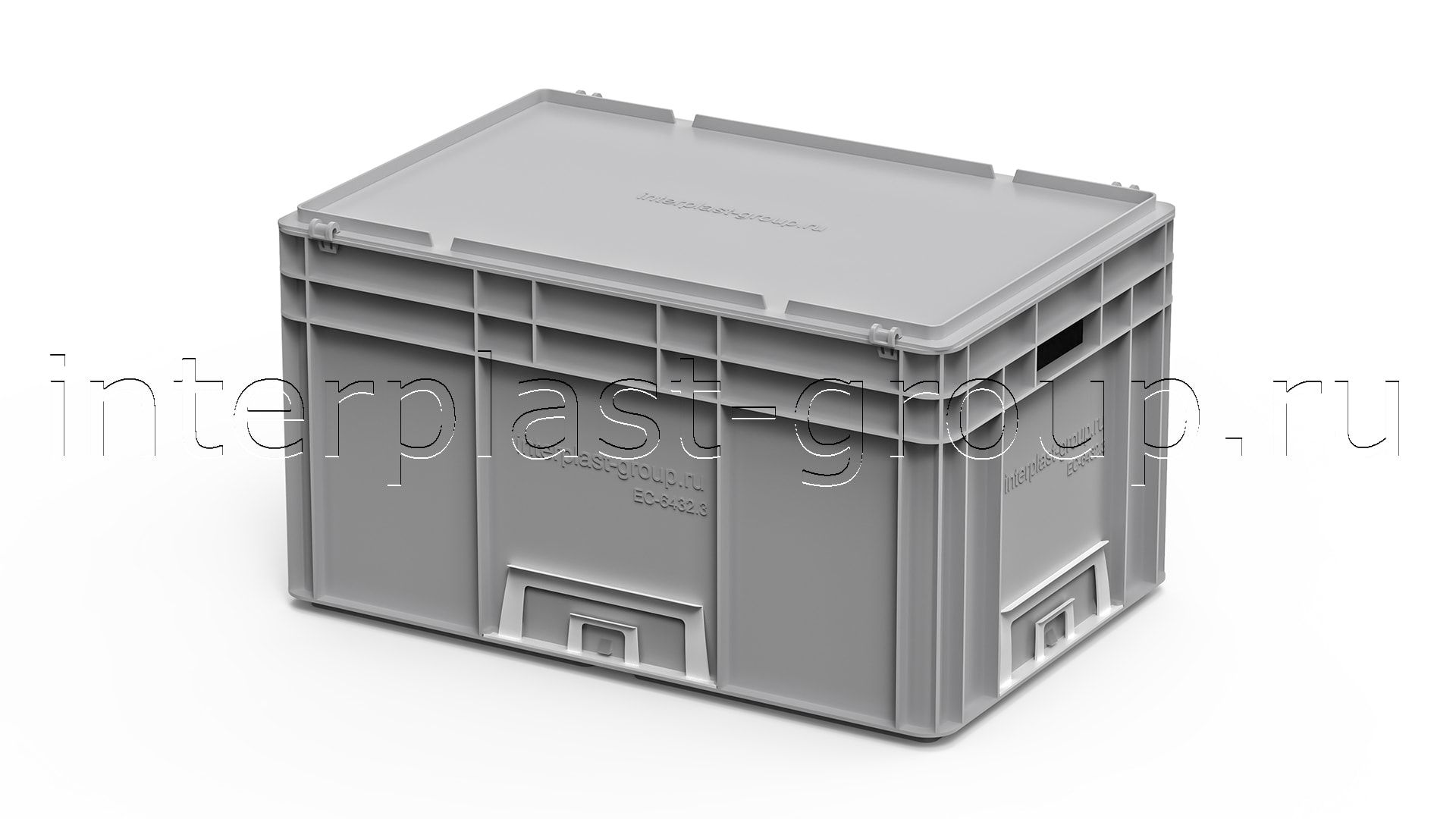 Евроконтейнер открытые ручки/усиленное дно (серый), 600x400x320 мм
