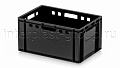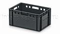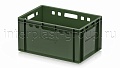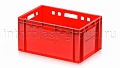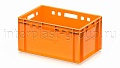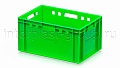 Модель применяется как контейнер универсальный и востребована в роли пищевого контейнера и контейнера для продуктов, включая ящик для мяса серии Е и ящик для колбасных изделий. Стандарт евростандарта позволяет использовать ящик как евроконтейнер в единой системе хранения с другими моделями серии.