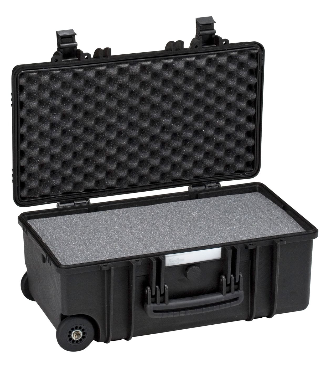 Тяжелые кейсы с колесами и телескопической ручкой. Уплотнительное кольцо и съемная крышка. Поставляется пустым или с поропластом в нижней части и в крышке. Самосмазывающиеся свободно вращающиеся колеса.